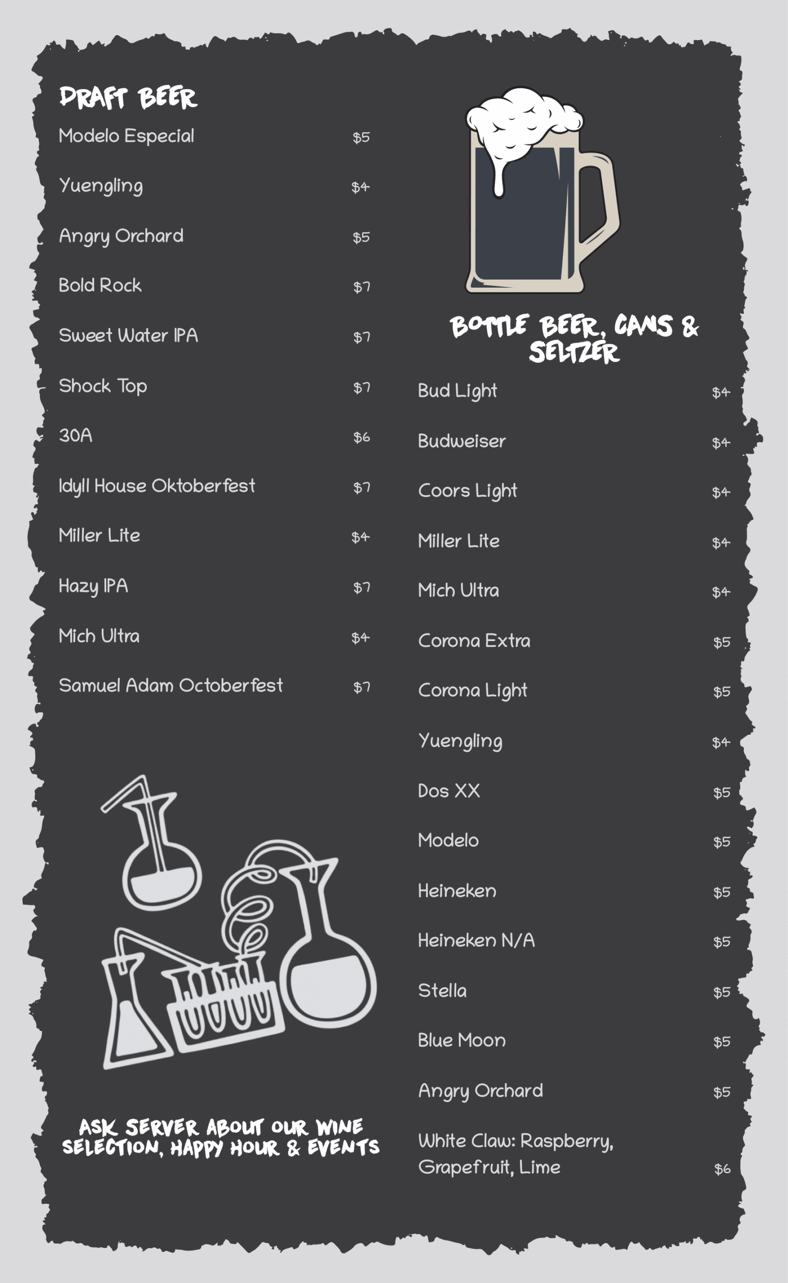 Happy Hour with Food & Drink Specials Offered Daily from 2pm to 6pm